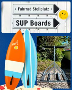 Im Bereich der Fahrradstellplätze hinter dem Parkdeck steht ab sofort ein fest verankerter Ständer für Stand-Up-Paddling-Boards zur Verfügung.